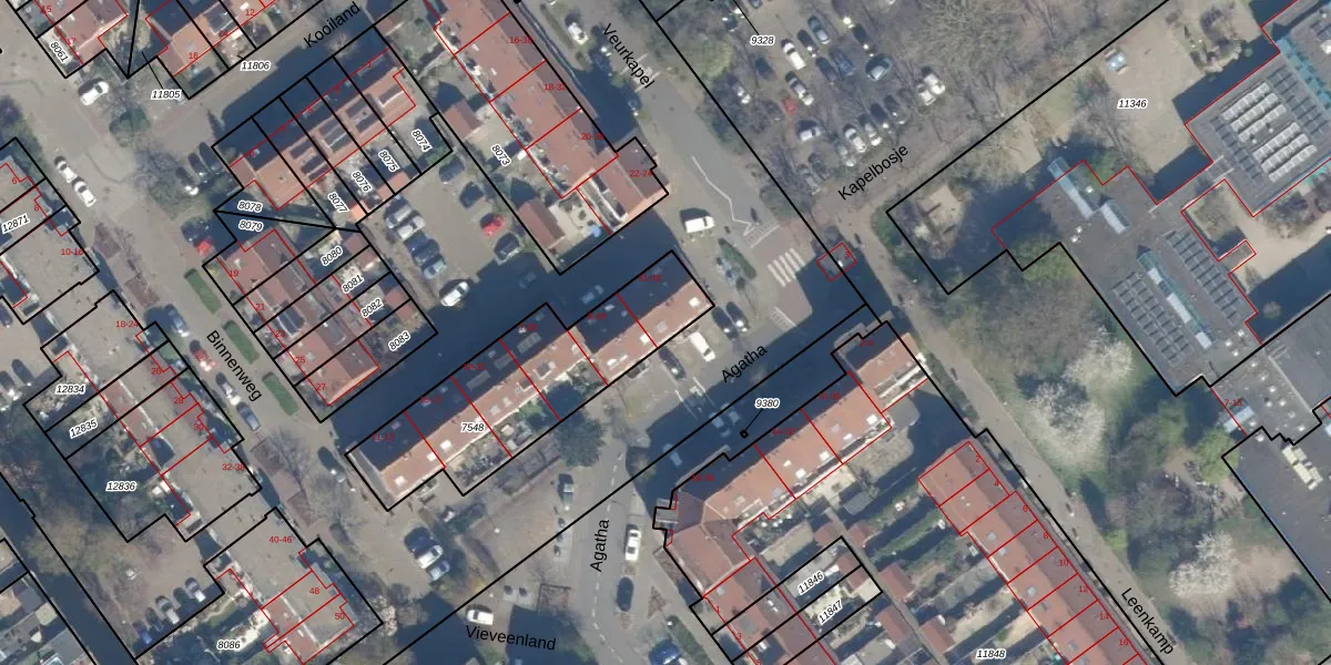 Agatha 31 is gelegen op kadastraal perceel VEU00B7548. Deze kadastrale aanduiding is uniek en wordt gebruikt door het Kadaster om eigendomsrechten en andere zakelijke rechten vast te leggen. Het perceel maakt onderdeel uit van de kadastrale gemeente Veur.