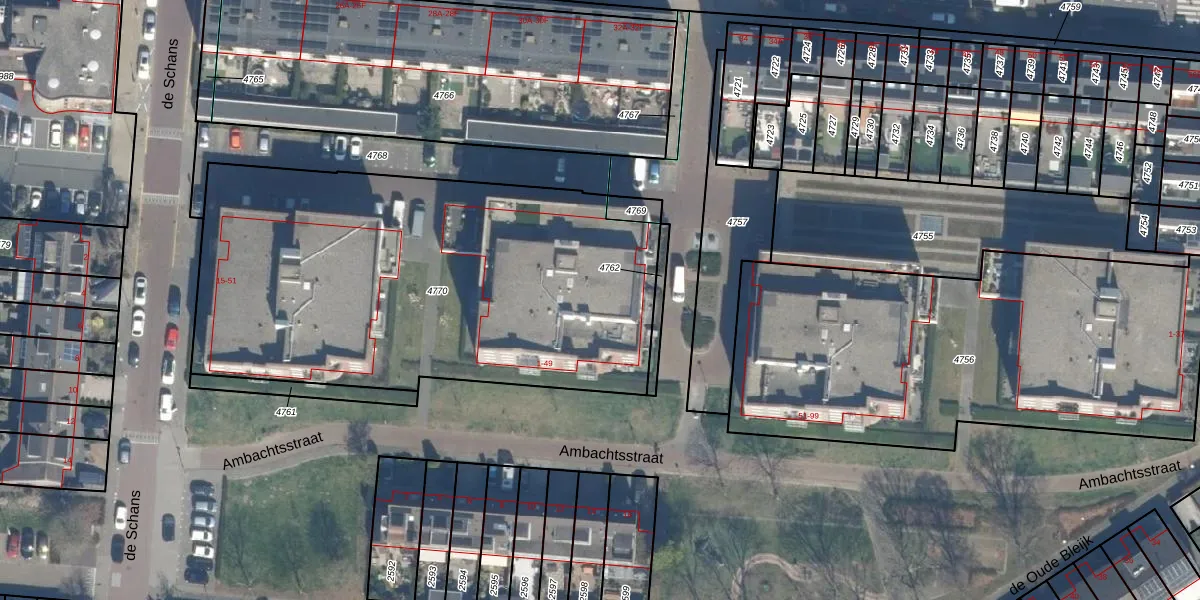 Het perceel waarop Ambachtsstraat 43 staat heeft een oppervlakte van 2561 m². Dit is een zeer groot perceel. De perceeloppervlakte wordt geregistreerd door het Kadaster. Gedetailleerde informatie over de maten van dit perceel kunt u vinden in het rapport Kadastrale kaart met maatvoering van Ambachtsstraat 43.