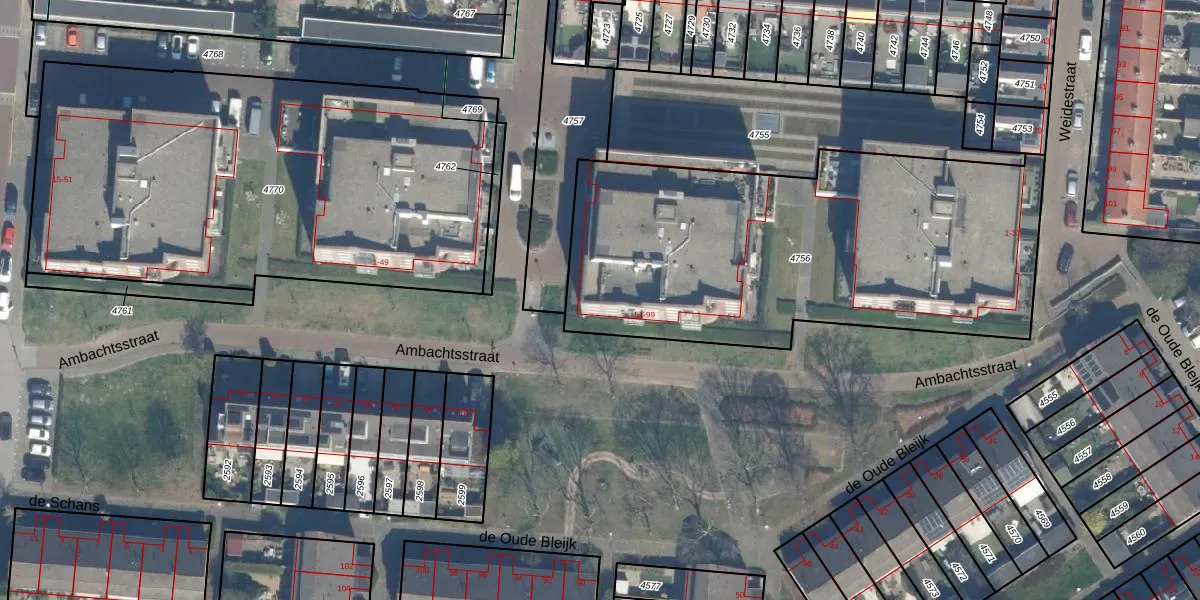 Het perceel waarop Ambachtsstraat 61 staat heeft een oppervlakte van 2224 m². Dit is een zeer groot perceel. De perceeloppervlakte wordt geregistreerd door het Kadaster. Gedetailleerde informatie over de maten van dit perceel kunt u vinden in het rapport Kadastrale kaart met maatvoering van Ambachtsstraat 61.