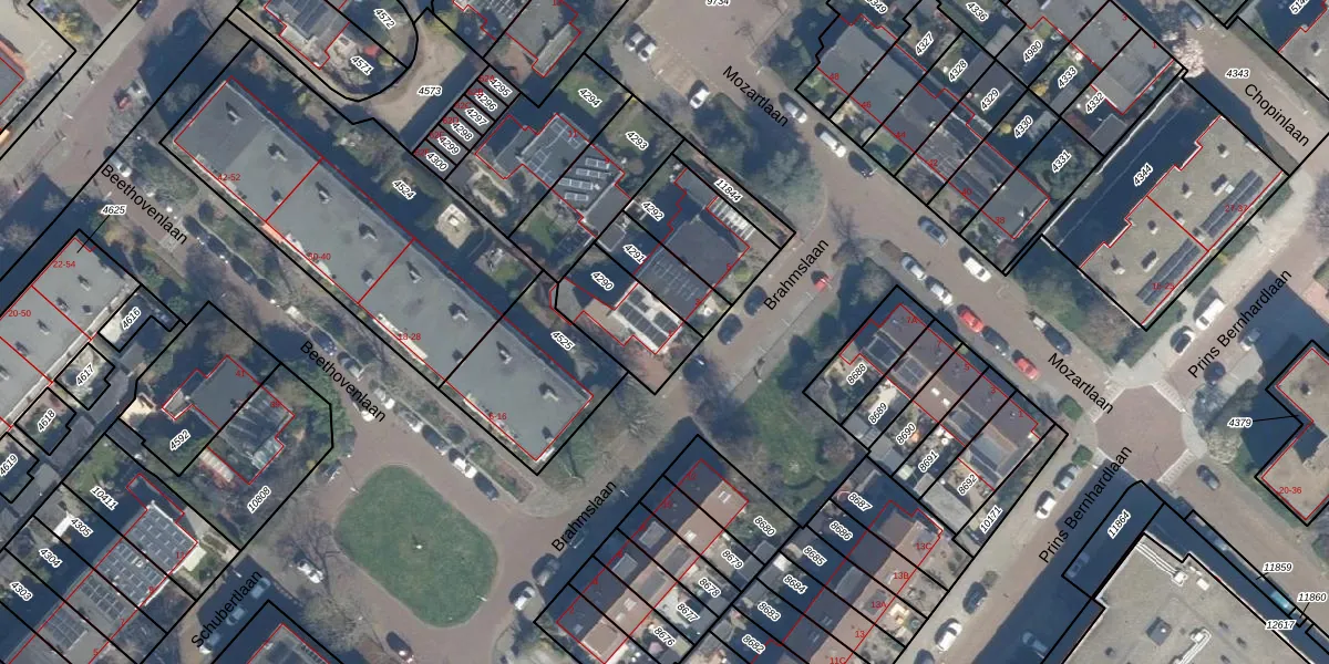 Het perceel waarop Brahmslaan 1 staat heeft een oppervlakte van 243 m². Dit is een middelgroot perceel. De perceeloppervlakte wordt geregistreerd door het Kadaster. Gedetailleerde informatie over de maten van dit perceel kunt u vinden in het rapport Kadastrale kaart met maatvoering van Brahmslaan 1.