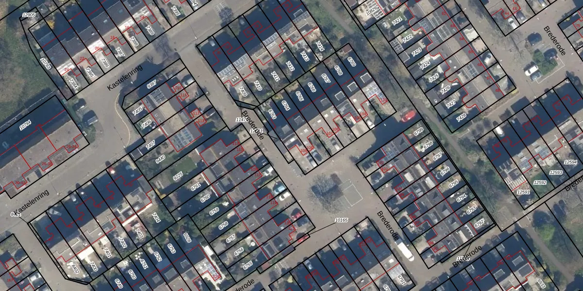 Brederode 109 is gelegen op kadastraal perceel VEU00B6763. Deze kadastrale aanduiding is uniek en wordt gebruikt door het Kadaster om eigendomsrechten en andere zakelijke rechten vast te leggen. Het perceel maakt onderdeel uit van de kadastrale gemeente Veur.