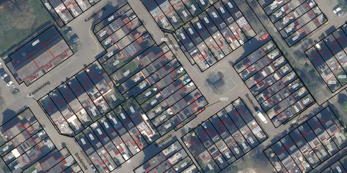 Brederode 118 is gelegen op kadastraal perceel VEU00B6758. Deze kadastrale aanduiding is uniek en wordt gebruikt door het Kadaster om eigendomsrechten en andere zakelijke rechten vast te leggen. Het perceel maakt onderdeel uit van de kadastrale gemeente Veur.