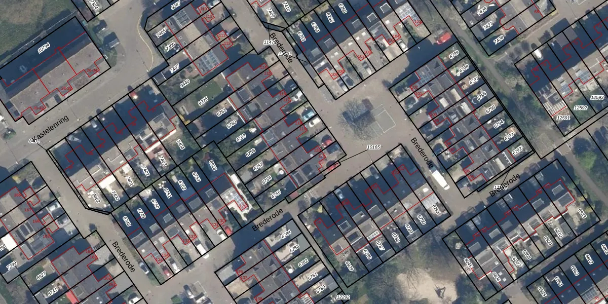 Brederode 120 is gelegen op kadastraal perceel VEU00B6756. Deze kadastrale aanduiding is uniek en wordt gebruikt door het Kadaster om eigendomsrechten en andere zakelijke rechten vast te leggen. Het perceel maakt onderdeel uit van de kadastrale gemeente Veur.