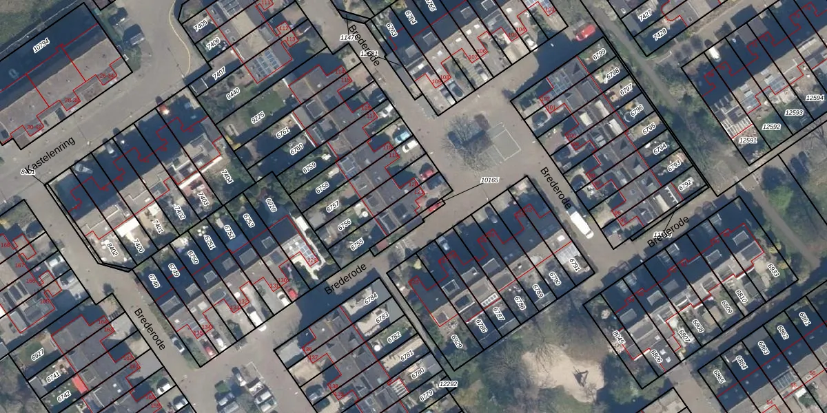 Het perceel waarop Brederode 121 staat heeft een oppervlakte van 185 m². Dit is een middelgroot perceel. De perceeloppervlakte wordt geregistreerd door het Kadaster. Gedetailleerde informatie over de maten van dit perceel kunt u vinden in het rapport Kadastrale kaart met maatvoering van Brederode 121.
