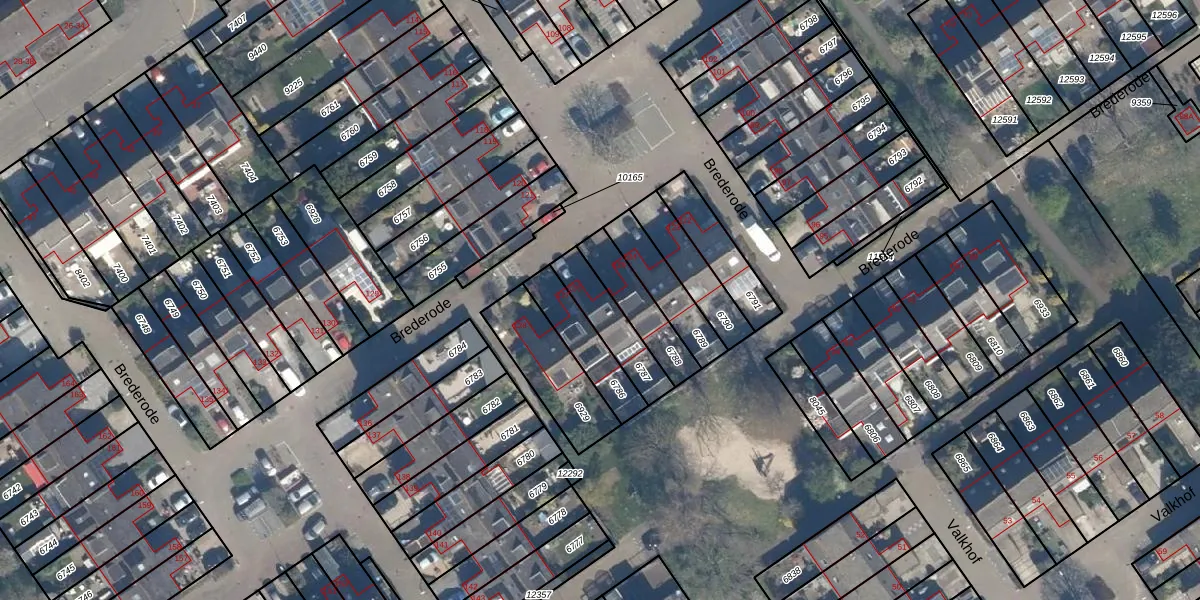 Brederode 126 is gelegen op kadastraal perceel VEU00B6787. Deze kadastrale aanduiding is uniek en wordt gebruikt door het Kadaster om eigendomsrechten en andere zakelijke rechten vast te leggen. Het perceel maakt onderdeel uit van de kadastrale gemeente Veur.