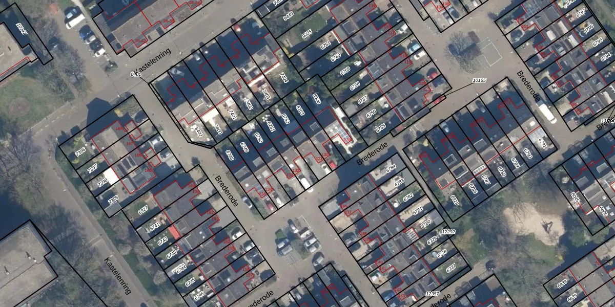 Brederode 131 is gelegen op kadastraal perceel VEU00B6752. Deze kadastrale aanduiding is uniek en wordt gebruikt door het Kadaster om eigendomsrechten en andere zakelijke rechten vast te leggen. Het perceel maakt onderdeel uit van de kadastrale gemeente Veur.