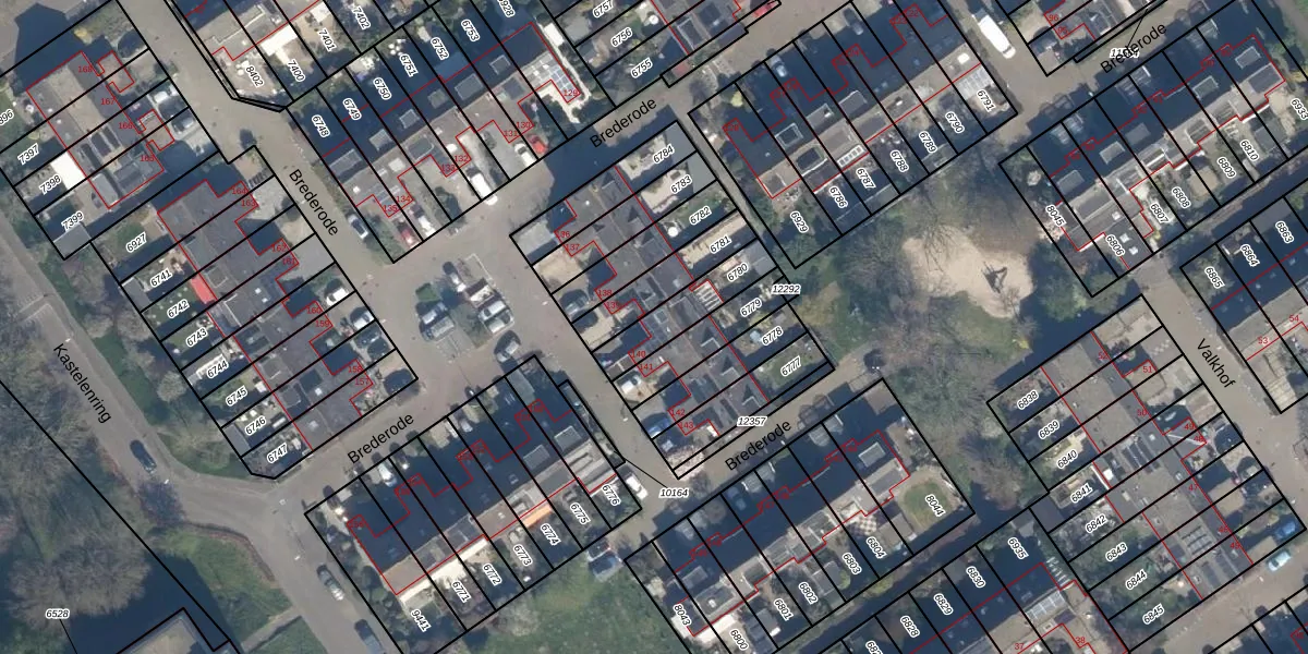 Brederode 140 is gelegen op kadastraal perceel VEU00B6780. Deze kadastrale aanduiding is uniek en wordt gebruikt door het Kadaster om eigendomsrechten en andere zakelijke rechten vast te leggen. Het perceel maakt onderdeel uit van de kadastrale gemeente Veur.
