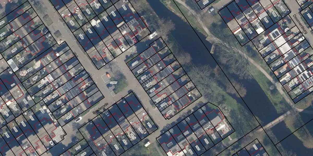 Brederode 22 is gelegen op kadastraal perceel VEU00B7495. Deze kadastrale aanduiding is uniek en wordt gebruikt door het Kadaster om eigendomsrechten en andere zakelijke rechten vast te leggen. Het perceel maakt onderdeel uit van de kadastrale gemeente Veur.