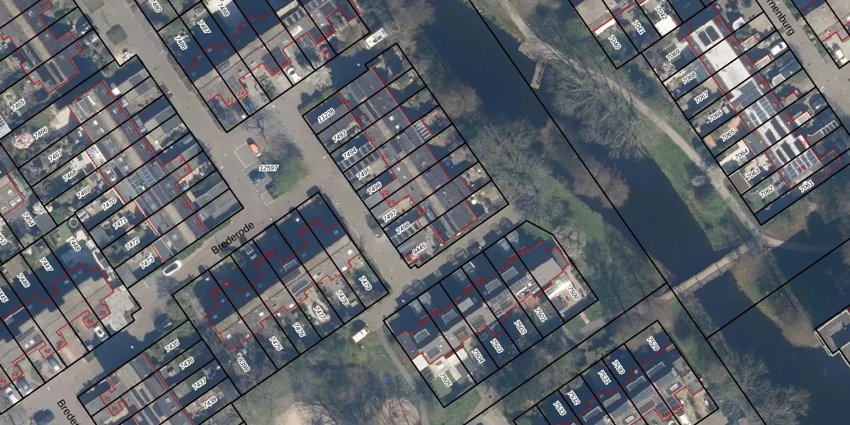 Brederode 25 is gelegen op kadastraal perceel VEU00B7498. Deze kadastrale aanduiding is uniek en wordt gebruikt door het Kadaster om eigendomsrechten en andere zakelijke rechten vast te leggen. Het perceel maakt onderdeel uit van de kadastrale gemeente Veur.