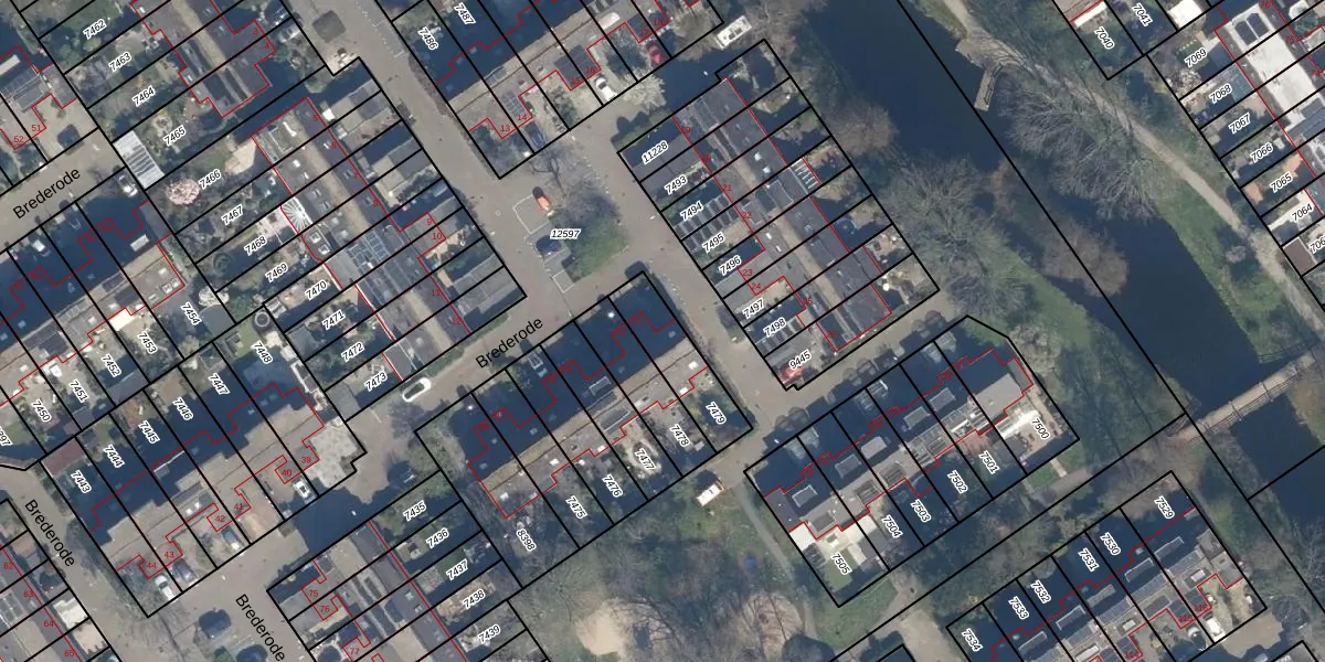 Brederode 33 is gelegen op kadastraal perceel VEU00B7479. Deze kadastrale aanduiding is uniek en wordt gebruikt door het Kadaster om eigendomsrechten en andere zakelijke rechten vast te leggen. Het perceel maakt onderdeel uit van de kadastrale gemeente Veur.