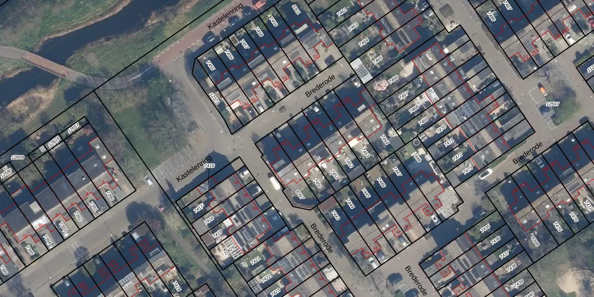 Het perceel waarop Brederode 46 staat heeft een oppervlakte van 182 m². Dit is een middelgroot perceel. De perceeloppervlakte wordt geregistreerd door het Kadaster. Gedetailleerde informatie over de maten van dit perceel kunt u vinden in het rapport Kadastrale kaart met maatvoering van Brederode 46.