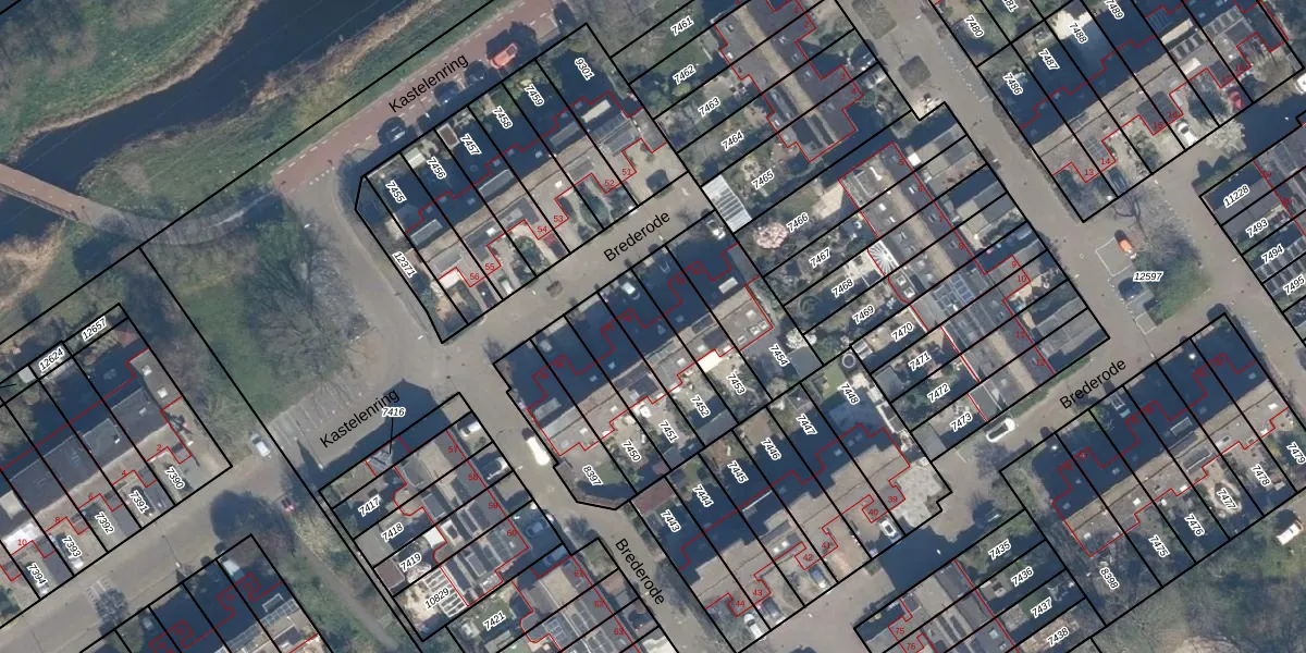Het perceel waarop Brederode 48 staat heeft een oppervlakte van 182 m². Dit is een middelgroot perceel. De perceeloppervlakte wordt geregistreerd door het Kadaster. Gedetailleerde informatie over de maten van dit perceel kunt u vinden in het rapport Kadastrale kaart met maatvoering van Brederode 48.