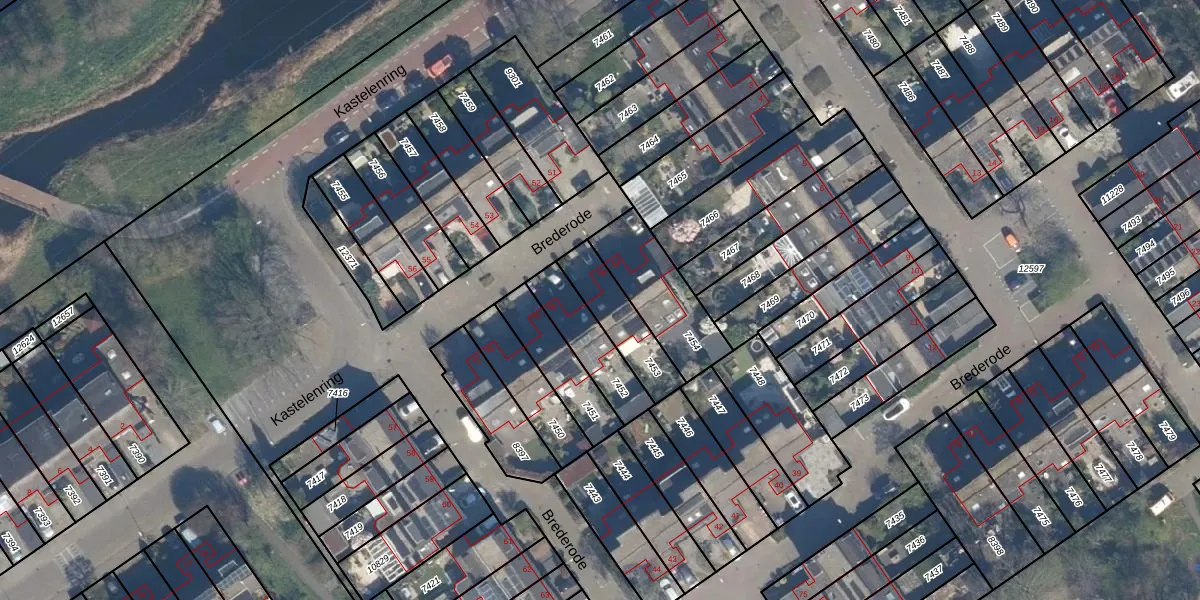 Het perceel waarop Brederode 49 staat heeft een oppervlakte van 182 m². Dit is een middelgroot perceel. De perceeloppervlakte wordt geregistreerd door het Kadaster. Gedetailleerde informatie over de maten van dit perceel kunt u vinden in het rapport Kadastrale kaart met maatvoering van Brederode 49.