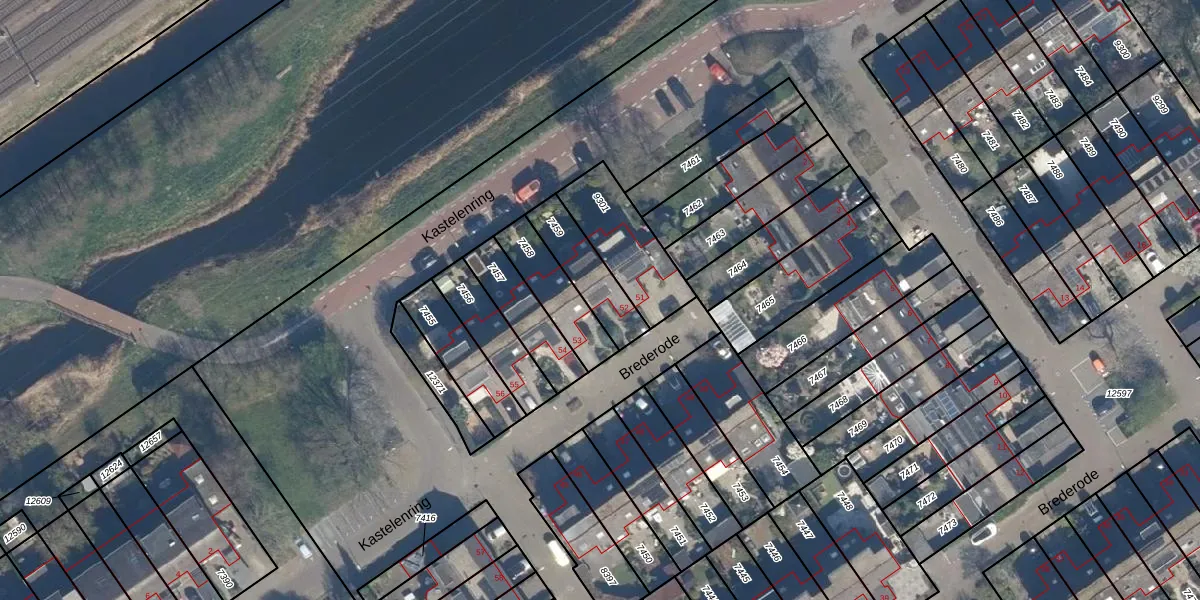 Het perceel waarop Brederode 52 staat heeft een oppervlakte van 174 m². Dit is een middelgroot perceel. De perceeloppervlakte wordt geregistreerd door het Kadaster. Gedetailleerde informatie over de maten van dit perceel kunt u vinden in het rapport Kadastrale kaart met maatvoering van Brederode 52.