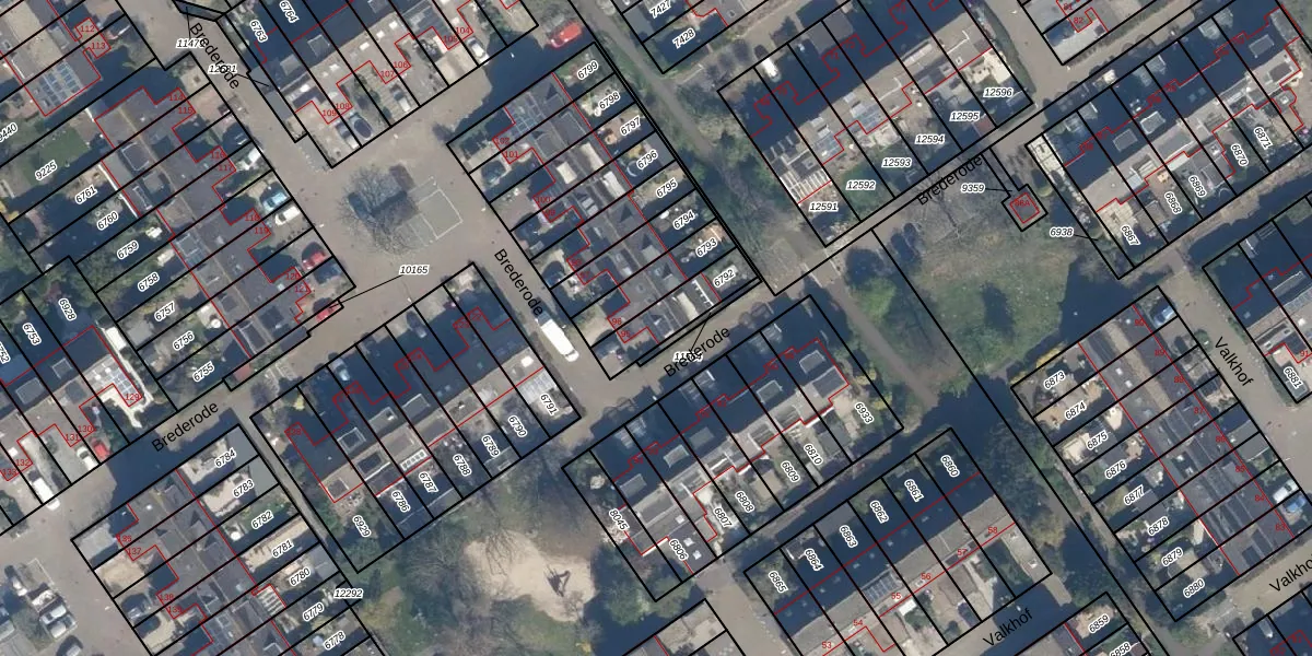 Brederode 95 is gelegen op kadastraal perceel VEU00B6792. Deze kadastrale aanduiding is uniek en wordt gebruikt door het Kadaster om eigendomsrechten en andere zakelijke rechten vast te leggen. Het perceel maakt onderdeel uit van de kadastrale gemeente Veur.