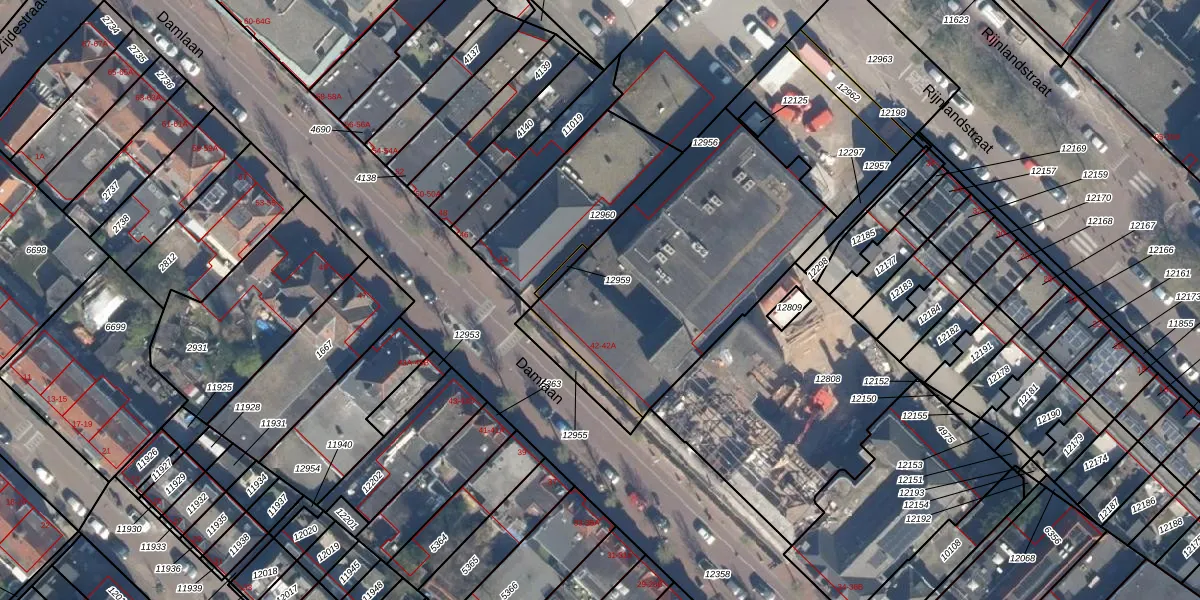 Damlaan 38 is gelegen op kadastraal perceel VEU00B12956. Deze kadastrale aanduiding is uniek en wordt gebruikt door het Kadaster om eigendomsrechten en andere zakelijke rechten vast te leggen. Het perceel maakt onderdeel uit van de kadastrale gemeente Veur.