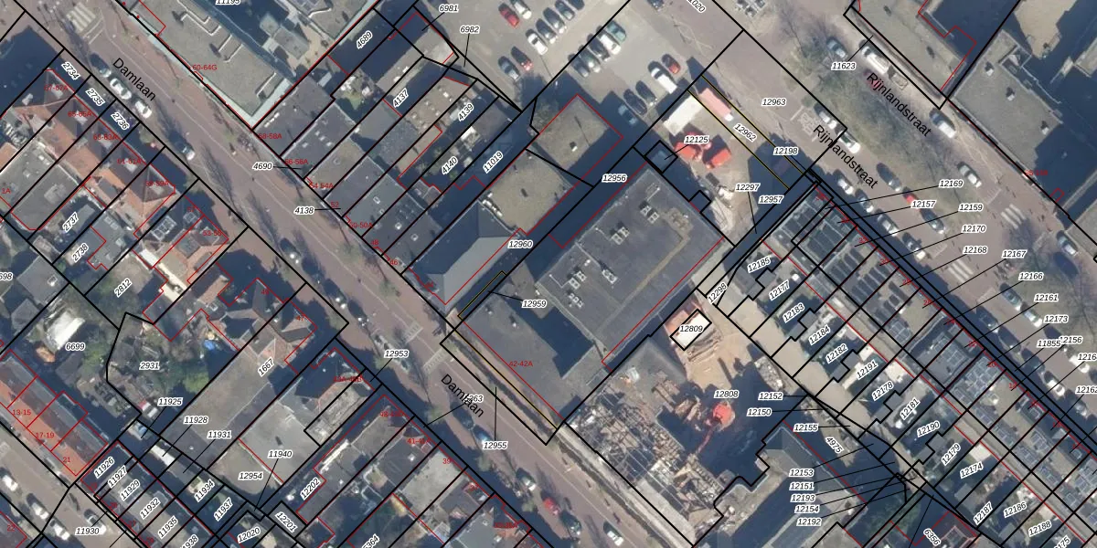 Damlaan 40-C is gelegen op kadastraal perceel VEU00B12956. Deze kadastrale aanduiding is uniek en wordt gebruikt door het Kadaster om eigendomsrechten en andere zakelijke rechten vast te leggen. Het perceel maakt onderdeel uit van de kadastrale gemeente Veur.