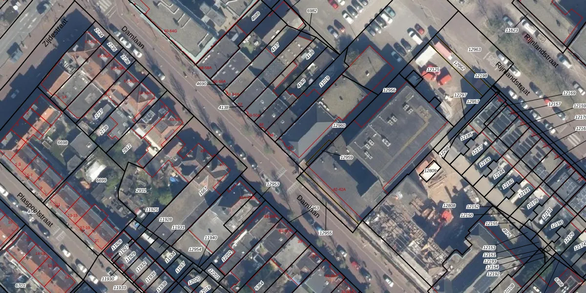 Damlaan 44 is gelegen op kadastraal perceel VEU00B12960. Deze kadastrale aanduiding is uniek en wordt gebruikt door het Kadaster om eigendomsrechten en andere zakelijke rechten vast te leggen. Het perceel maakt onderdeel uit van de kadastrale gemeente Veur.