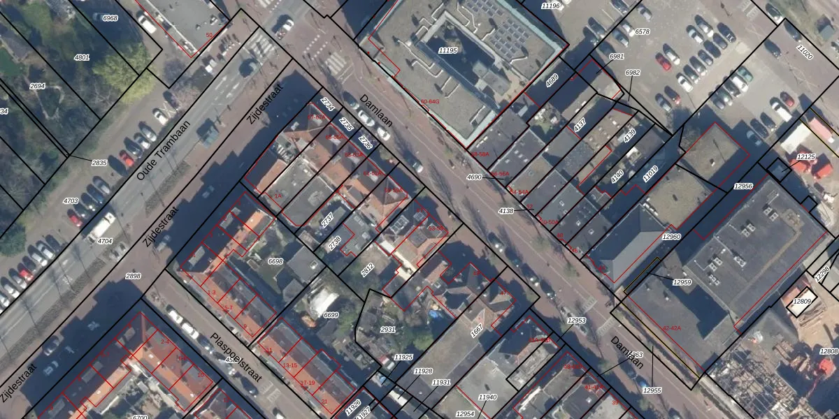 Damlaan 57 is gelegen op kadastraal perceel VEU00B2812. Deze kadastrale aanduiding is uniek en wordt gebruikt door het Kadaster om eigendomsrechten en andere zakelijke rechten vast te leggen. Het perceel maakt onderdeel uit van de kadastrale gemeente Veur.