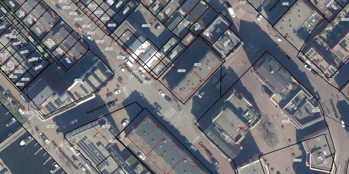 Het perceel waarop Damplein 14 staat heeft een oppervlakte van 725 m². Dit is een groot perceel. De perceeloppervlakte wordt geregistreerd door het Kadaster. Gedetailleerde informatie over de maten van dit perceel kunt u vinden in het rapport Kadastrale kaart met maatvoering van Damplein 14.