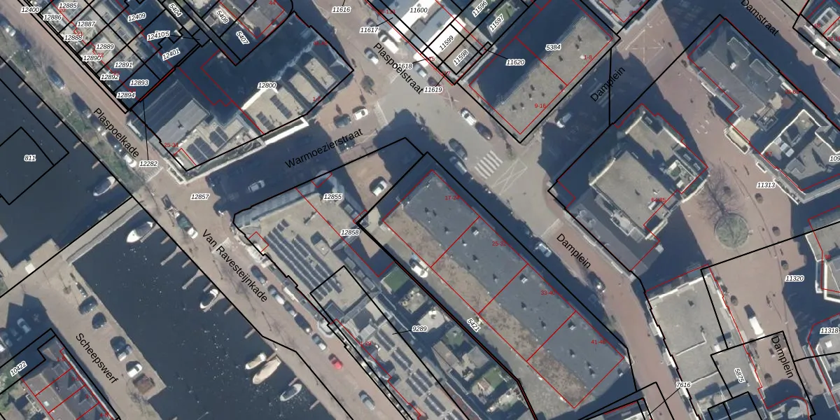 Het perceel waarop Damplein 19 staat heeft een oppervlakte van 1737 m². Dit is een zeer groot perceel. De perceeloppervlakte wordt geregistreerd door het Kadaster. Gedetailleerde informatie over de maten van dit perceel kunt u vinden in het rapport Kadastrale kaart met maatvoering van Damplein 19.
