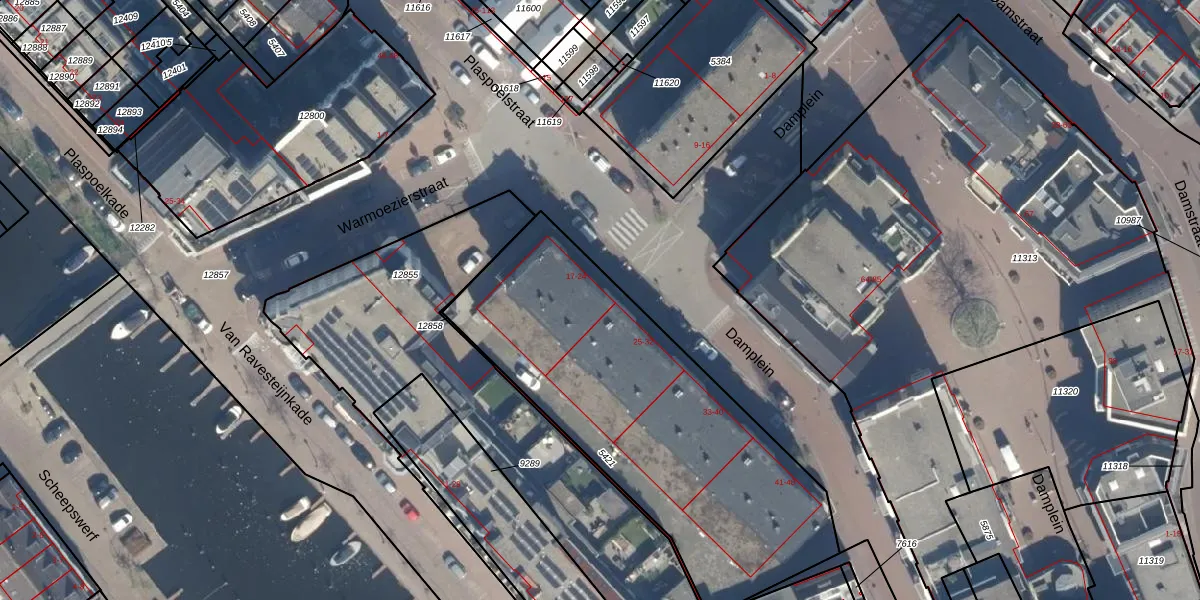 Het perceel waarop Damplein 24 staat heeft een oppervlakte van 1737 m². Dit is een zeer groot perceel. De perceeloppervlakte wordt geregistreerd door het Kadaster. Gedetailleerde informatie over de maten van dit perceel kunt u vinden in het rapport Kadastrale kaart met maatvoering van Damplein 24.