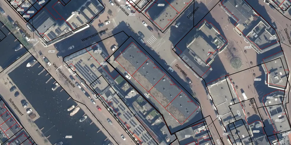 Het perceel waarop Damplein 27 staat heeft een oppervlakte van 1737 m². Dit is een zeer groot perceel. De perceeloppervlakte wordt geregistreerd door het Kadaster. Gedetailleerde informatie over de maten van dit perceel kunt u vinden in het rapport Kadastrale kaart met maatvoering van Damplein 27.