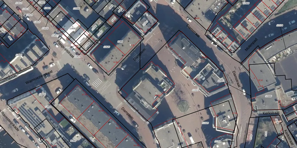Het perceel waarop Damplein 75 staat heeft een oppervlakte van 3243 m². Dit is een zeer groot perceel. De perceeloppervlakte wordt geregistreerd door het Kadaster. Gedetailleerde informatie over de maten van dit perceel kunt u vinden in het rapport Kadastrale kaart met maatvoering van Damplein 75.