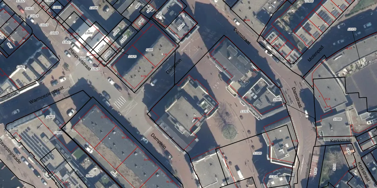 Het perceel waarop Damplein 80 staat heeft een oppervlakte van 3243 m². Dit is een zeer groot perceel. De perceeloppervlakte wordt geregistreerd door het Kadaster. Gedetailleerde informatie over de maten van dit perceel kunt u vinden in het rapport Kadastrale kaart met maatvoering van Damplein 80.
