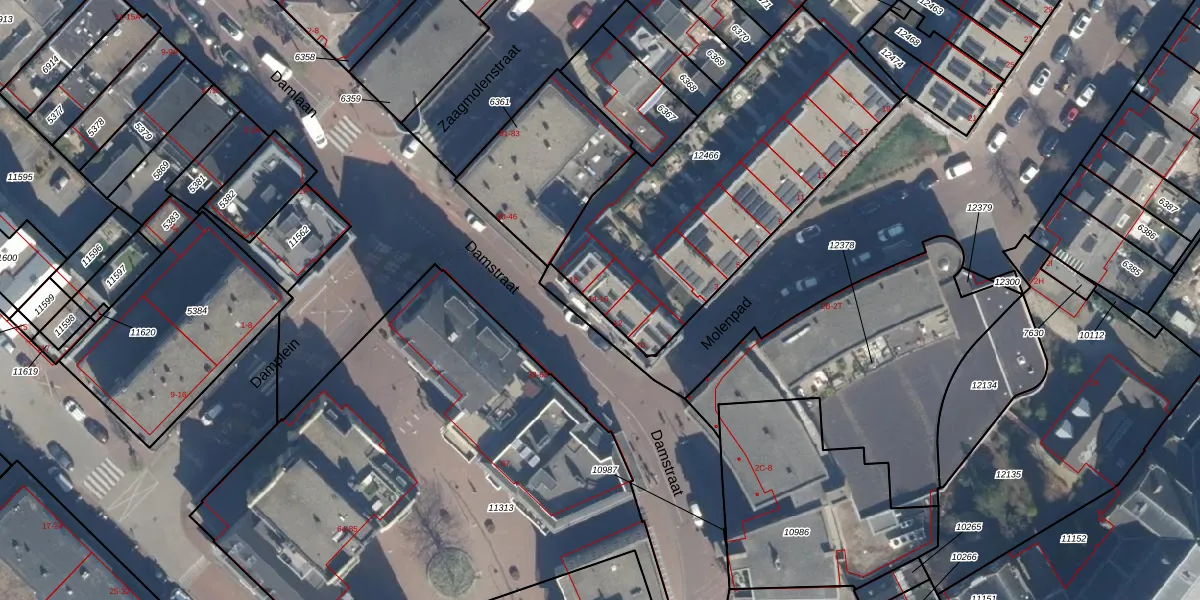 Damstraat 16 is gelegen op kadastraal perceel VEU00B12466. Deze kadastrale aanduiding is uniek en wordt gebruikt door het Kadaster om eigendomsrechten en andere zakelijke rechten vast te leggen. Het perceel maakt onderdeel uit van de kadastrale gemeente Veur.