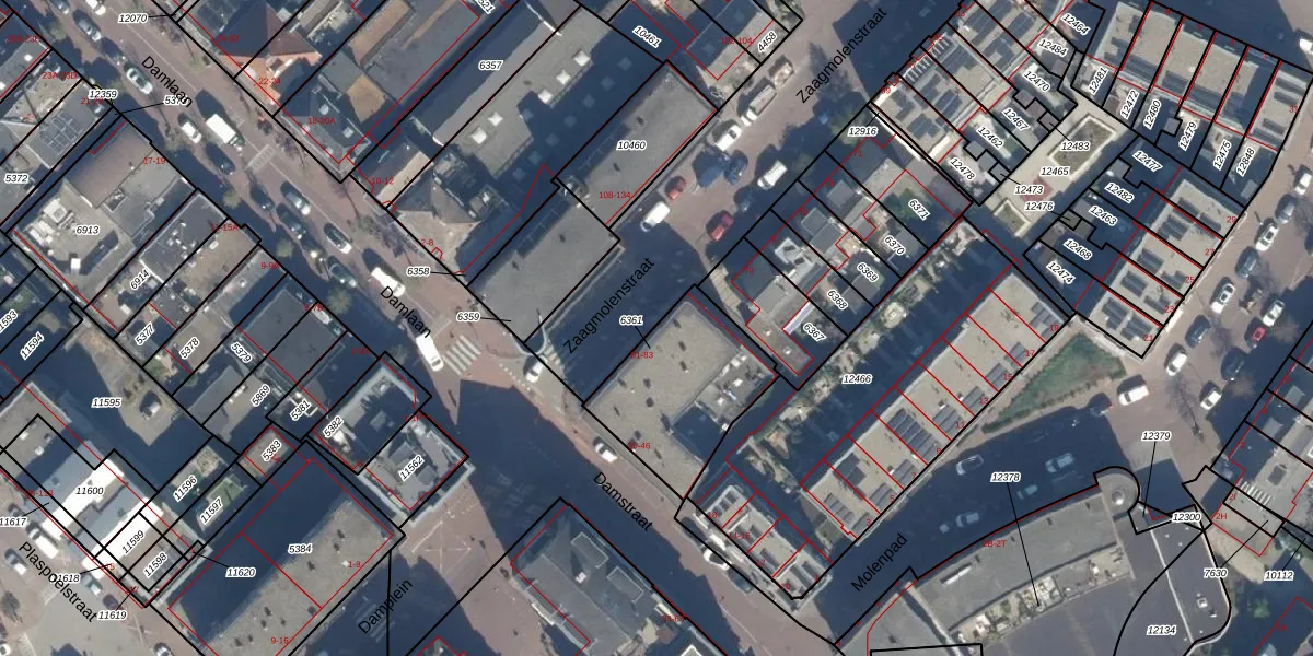 Damstraat 44 is gelegen op kadastraal perceel VEU00B6361. Deze kadastrale aanduiding is uniek en wordt gebruikt door het Kadaster om eigendomsrechten en andere zakelijke rechten vast te leggen. Het perceel maakt onderdeel uit van de kadastrale gemeente Veur.
