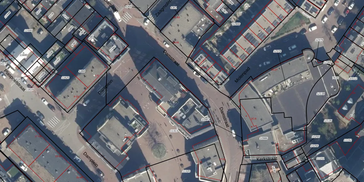 Het perceel waarop Damstraat 53 staat heeft een oppervlakte van 3243 m². Dit is een zeer groot perceel. De perceeloppervlakte wordt geregistreerd door het Kadaster. Gedetailleerde informatie over de maten van dit perceel kunt u vinden in het rapport Kadastrale kaart met maatvoering van Damstraat 53.