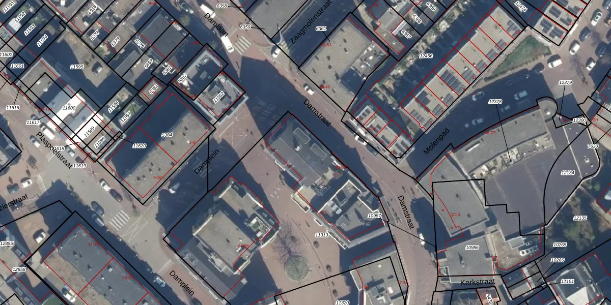 Het perceel waarop Damstraat 55 staat heeft een oppervlakte van 3243 m². Dit is een zeer groot perceel. De perceeloppervlakte wordt geregistreerd door het Kadaster. Gedetailleerde informatie over de maten van dit perceel kunt u vinden in het rapport Kadastrale kaart met maatvoering van Damstraat 55.