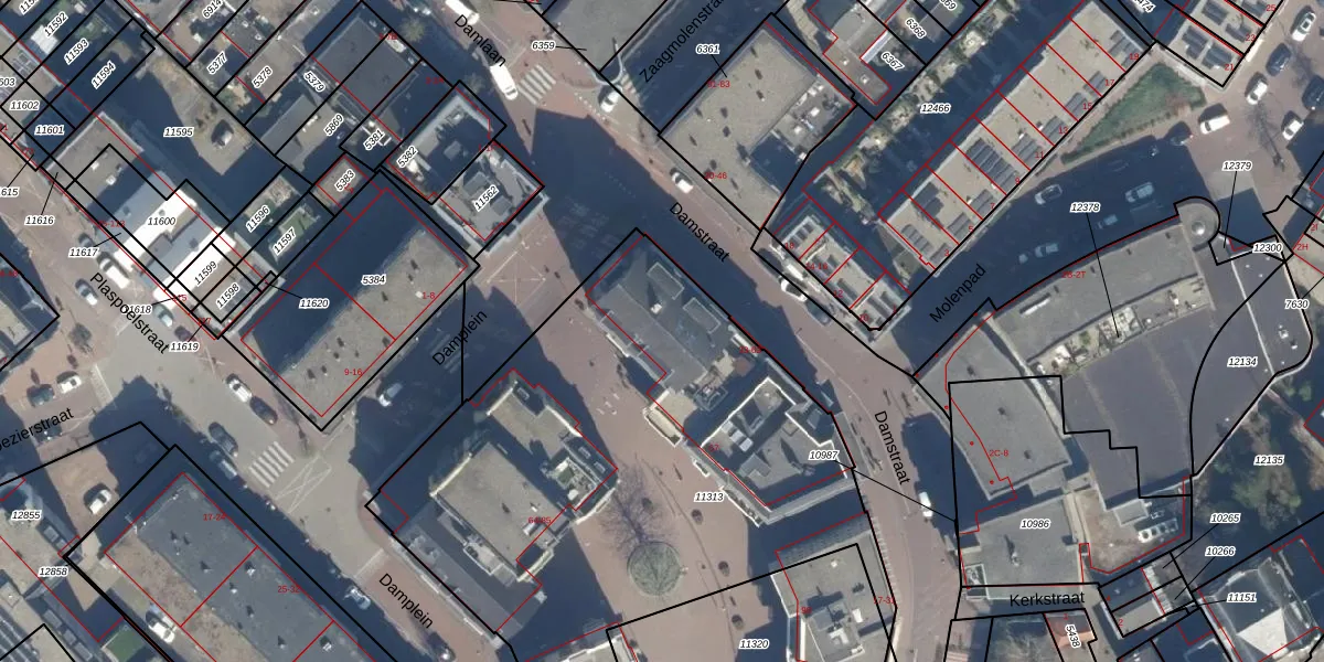 Het perceel waarop Damstraat 59 staat heeft een oppervlakte van 3243 m². Dit is een zeer groot perceel. De perceeloppervlakte wordt geregistreerd door het Kadaster. Gedetailleerde informatie over de maten van dit perceel kunt u vinden in het rapport Kadastrale kaart met maatvoering van Damstraat 59.
