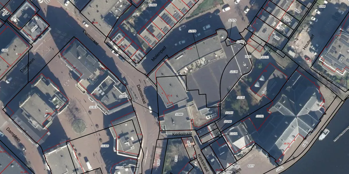 Het perceel waarop Damstraat 6-A staat heeft een oppervlakte van 819 m². Dit is een groot perceel. De perceeloppervlakte wordt geregistreerd door het Kadaster. Gedetailleerde informatie over de maten van dit perceel kunt u vinden in het rapport Kadastrale kaart met maatvoering van Damstraat 6-A.
