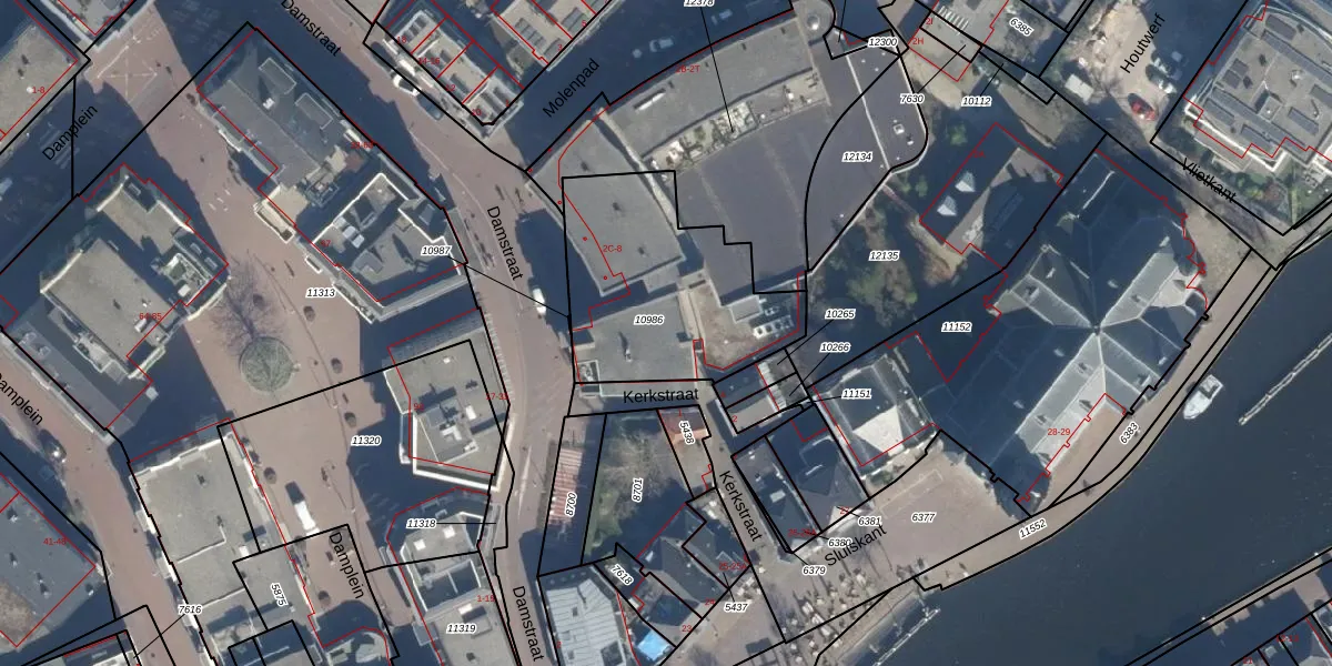 Het perceel waarop Damstraat 6-K staat heeft een oppervlakte van 819 m². Dit is een groot perceel. De perceeloppervlakte wordt geregistreerd door het Kadaster. Gedetailleerde informatie over de maten van dit perceel kunt u vinden in het rapport Kadastrale kaart met maatvoering van Damstraat 6-K.