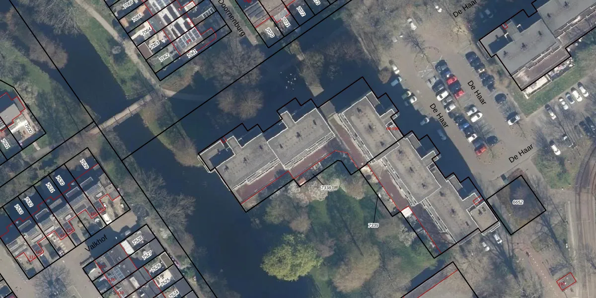 De Haar 104 is gelegen op kadastraal perceel VEU00B7338. Deze kadastrale aanduiding is uniek en wordt gebruikt door het Kadaster om eigendomsrechten en andere zakelijke rechten vast te leggen. Het perceel maakt onderdeel uit van de kadastrale gemeente Veur.