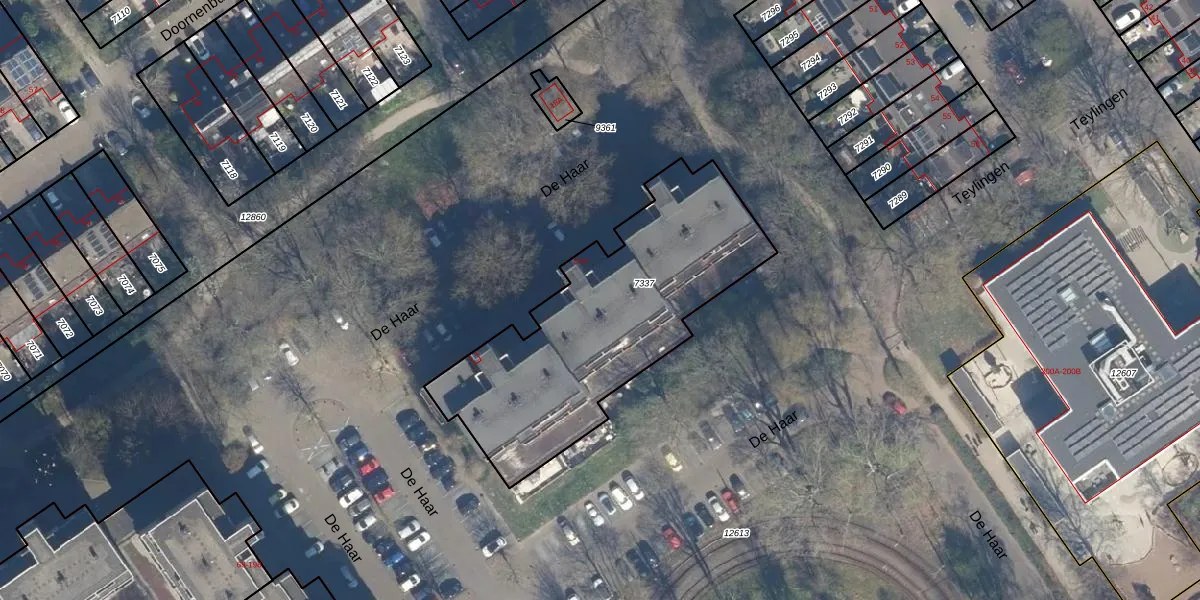 De Haar 25 is gelegen op kadastraal perceel VEU00B7337. Deze kadastrale aanduiding is uniek en wordt gebruikt door het Kadaster om eigendomsrechten en andere zakelijke rechten vast te leggen. Het perceel maakt onderdeel uit van de kadastrale gemeente Veur.