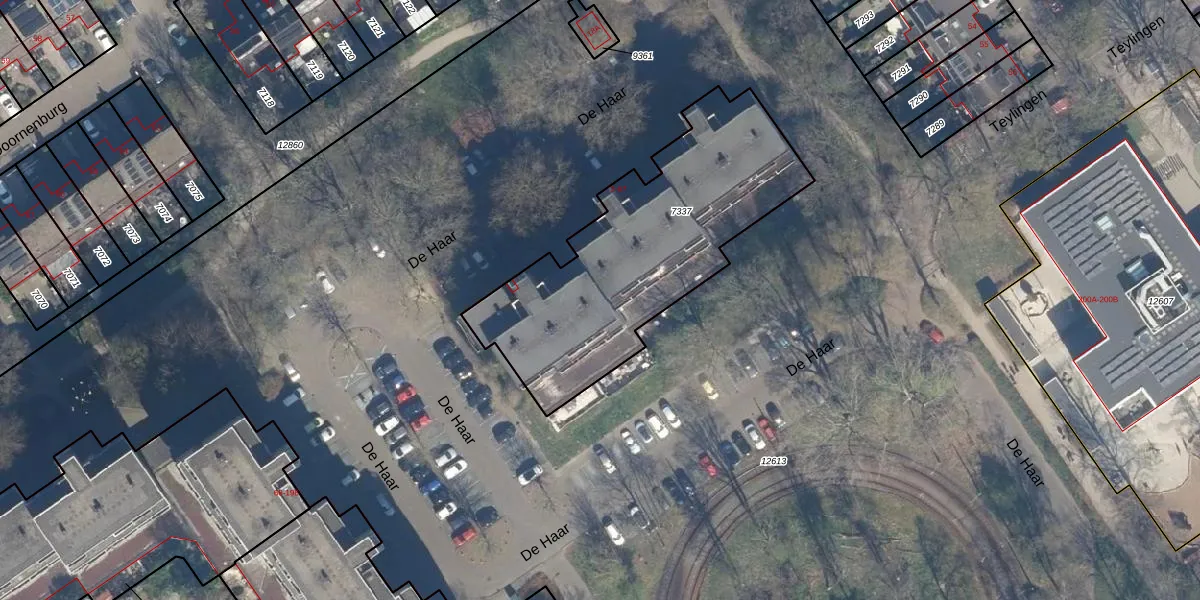 De Haar 53 is gelegen op kadastraal perceel VEU00B7337. Deze kadastrale aanduiding is uniek en wordt gebruikt door het Kadaster om eigendomsrechten en andere zakelijke rechten vast te leggen. Het perceel maakt onderdeel uit van de kadastrale gemeente Veur.