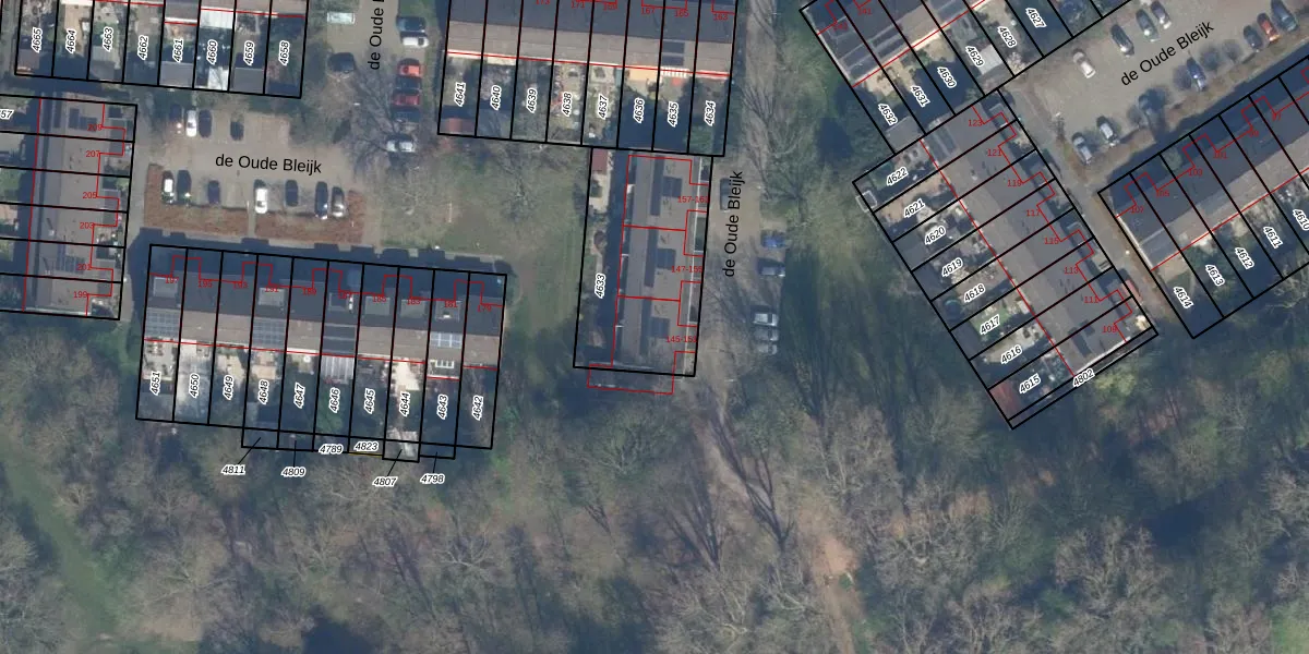 Het perceel waarop de Oude Bleijk 151 staat heeft een oppervlakte van 628 m². Dit is een groot perceel. De perceeloppervlakte wordt geregistreerd door het Kadaster. Gedetailleerde informatie over de maten van dit perceel kunt u vinden in het rapport Kadastrale kaart met maatvoering van de Oude Bleijk 151.