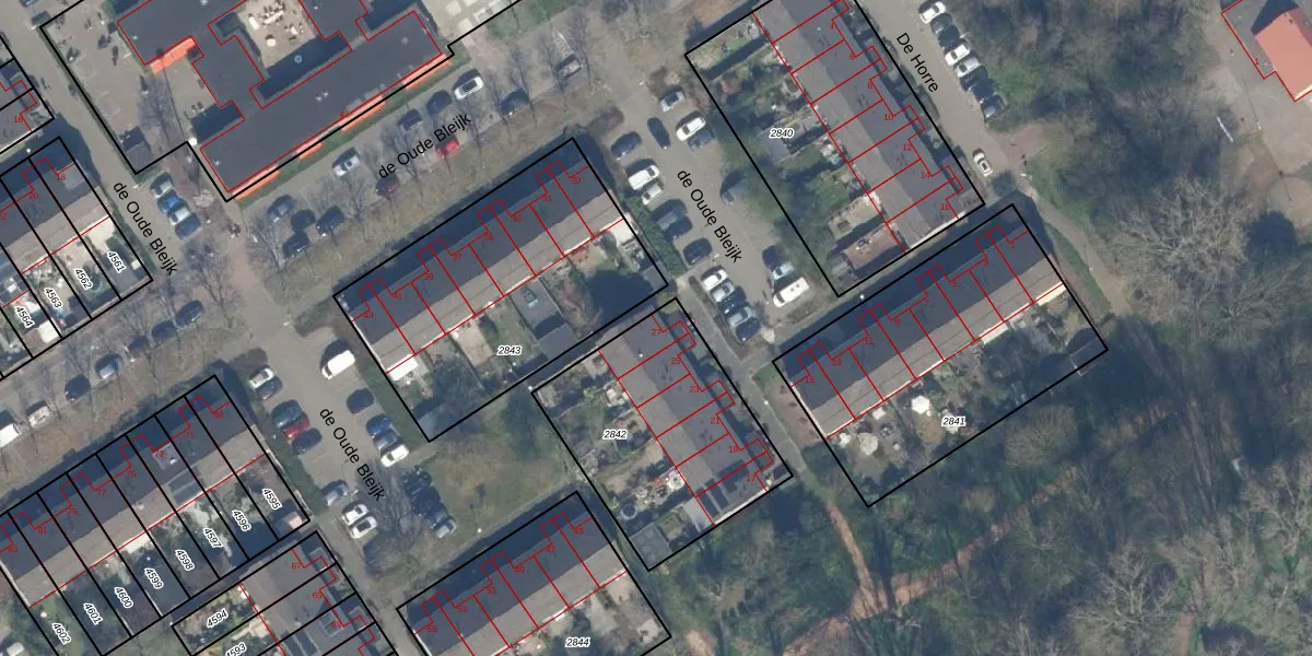 Het perceel waarop de Oude Bleijk 27 staat heeft een oppervlakte van 873 m². Dit is een groot perceel. De perceeloppervlakte wordt geregistreerd door het Kadaster. Gedetailleerde informatie over de maten van dit perceel kunt u vinden in het rapport Kadastrale kaart met maatvoering van de Oude Bleijk 27.