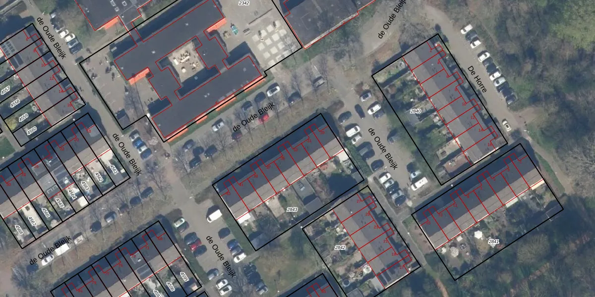 Het perceel waarop de Oude Bleijk 33 staat heeft een oppervlakte van 1159 m². Dit is een zeer groot perceel. De perceeloppervlakte wordt geregistreerd door het Kadaster. Gedetailleerde informatie over de maten van dit perceel kunt u vinden in het rapport Kadastrale kaart met maatvoering van de Oude Bleijk 33.