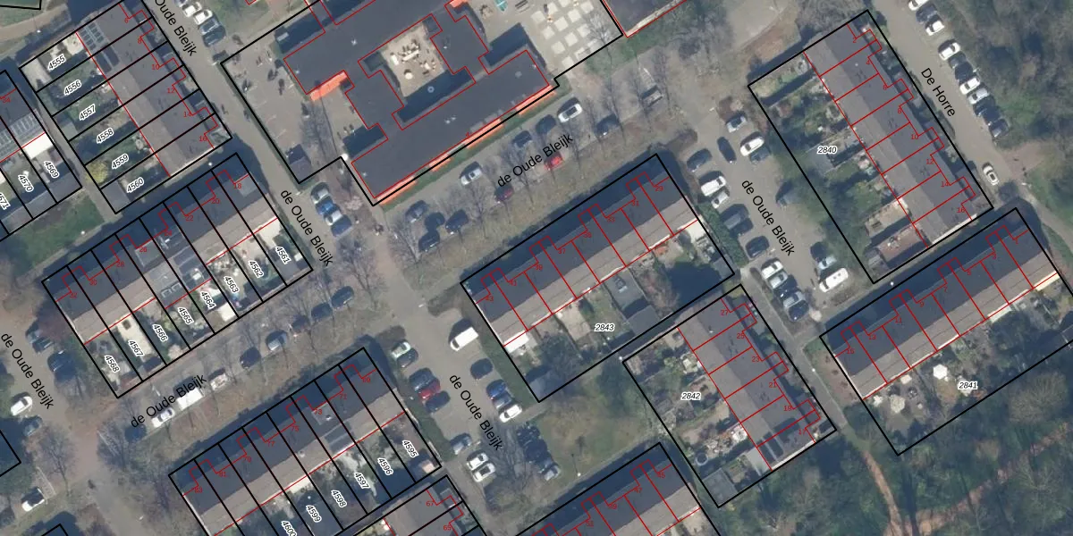 Het perceel waarop de Oude Bleijk 39 staat heeft een oppervlakte van 1159 m². Dit is een zeer groot perceel. De perceeloppervlakte wordt geregistreerd door het Kadaster. Gedetailleerde informatie over de maten van dit perceel kunt u vinden in het rapport Kadastrale kaart met maatvoering van de Oude Bleijk 39.