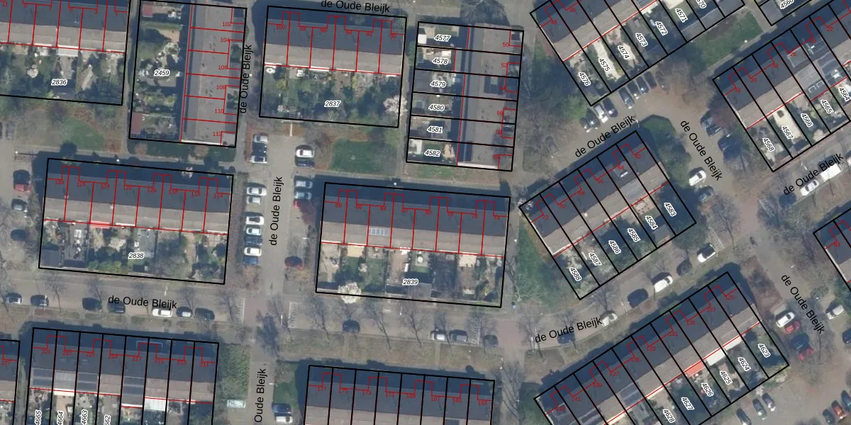 Het perceel waarop de Oude Bleijk 80 staat heeft een oppervlakte van 1134 m². Dit is een zeer groot perceel. De perceeloppervlakte wordt geregistreerd door het Kadaster. Gedetailleerde informatie over de maten van dit perceel kunt u vinden in het rapport Kadastrale kaart met maatvoering van de Oude Bleijk 80.