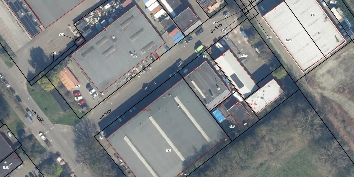 Het perceel waarop de Star 15-A staat heeft een oppervlakte van 2955 m². Dit is een zeer groot perceel. De perceeloppervlakte wordt geregistreerd door het Kadaster. Gedetailleerde informatie over de maten van dit perceel kunt u vinden in het rapport Kadastrale kaart met maatvoering van de Star 15-A.