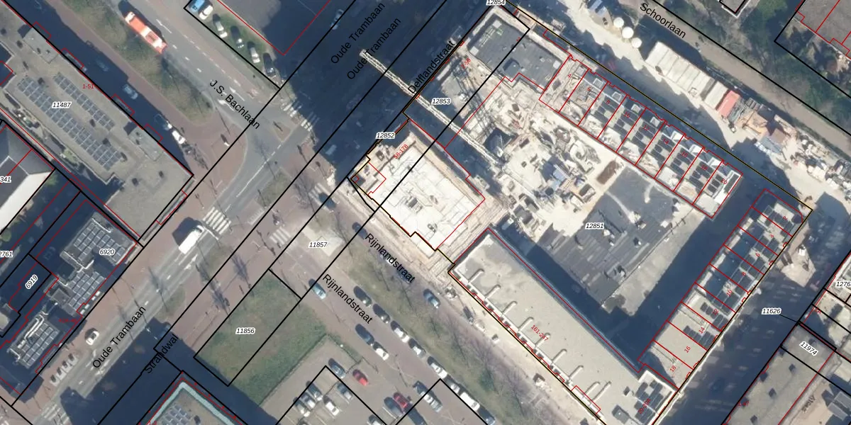 Delflandstraat 104 is gelegen op kadastraal perceel VEU00B12851. Deze kadastrale aanduiding is uniek en wordt gebruikt door het Kadaster om eigendomsrechten en andere zakelijke rechten vast te leggen. Het perceel maakt onderdeel uit van de kadastrale gemeente Veur.