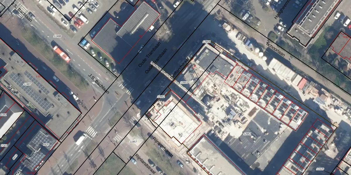 Delflandstraat 56 is gelegen op kadastraal perceel VEU00B12853. Deze kadastrale aanduiding is uniek en wordt gebruikt door het Kadaster om eigendomsrechten en andere zakelijke rechten vast te leggen. Het perceel maakt onderdeel uit van de kadastrale gemeente Veur.