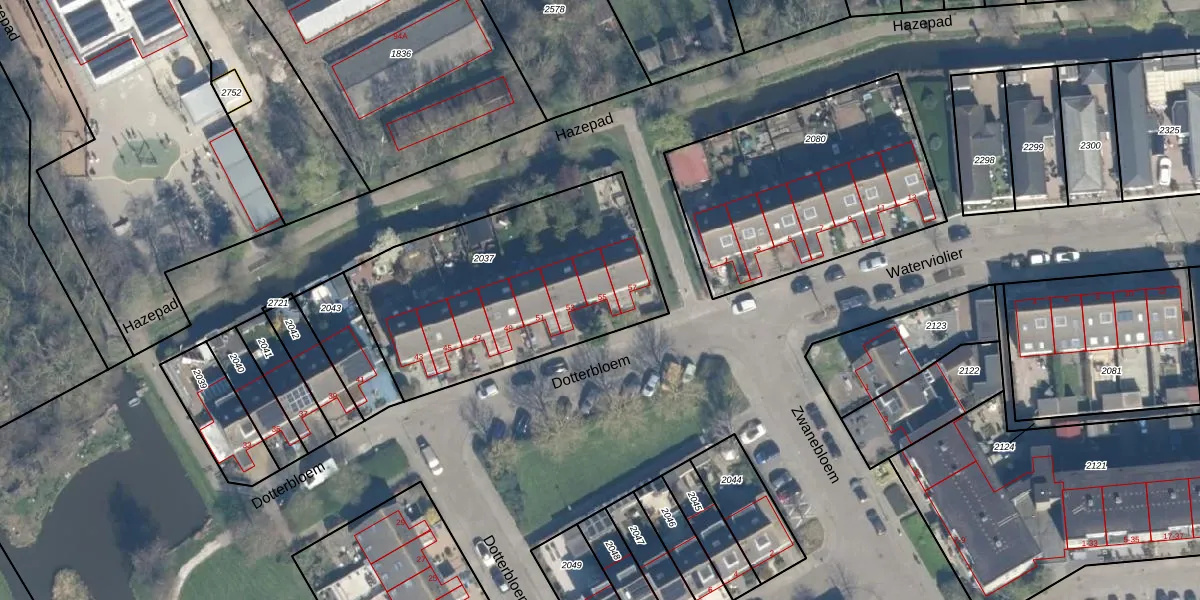 Dotterbloem 55 is gelegen op kadastraal perceel SWK03C2037. Deze kadastrale aanduiding is uniek en wordt gebruikt door het Kadaster om eigendomsrechten en andere zakelijke rechten vast te leggen. Het perceel maakt onderdeel uit van de kadastrale gemeente Stompwijk.