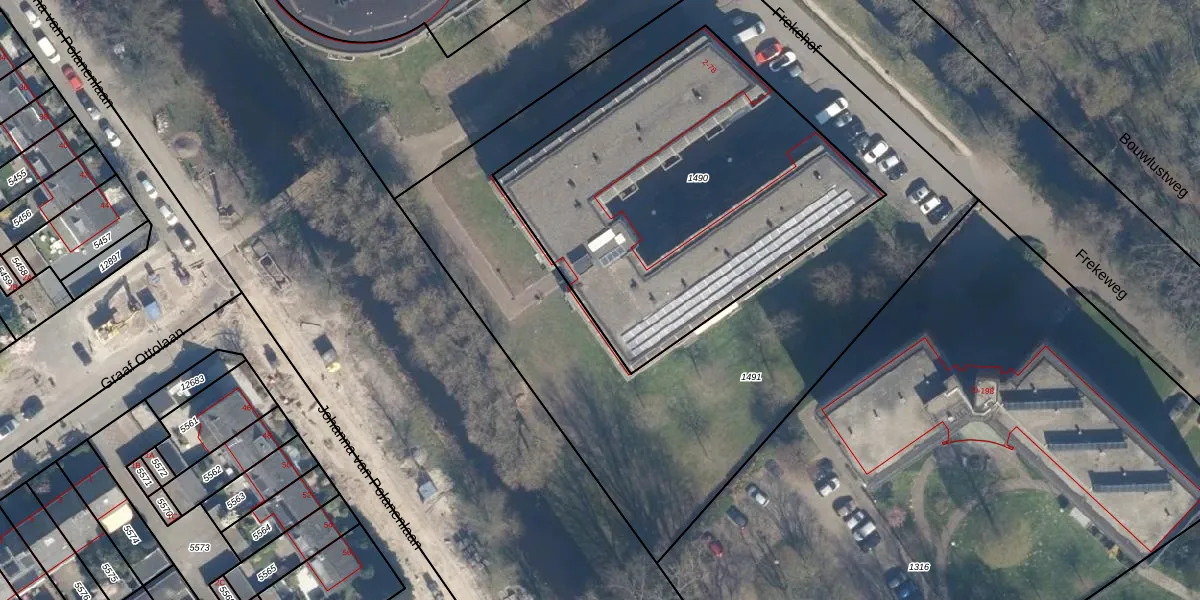Frekehof 2 is gelegen op kadastraal perceel VEU00A1490. Deze kadastrale aanduiding is uniek en wordt gebruikt door het Kadaster om eigendomsrechten en andere zakelijke rechten vast te leggen. Het perceel maakt onderdeel uit van de kadastrale gemeente Veur.
