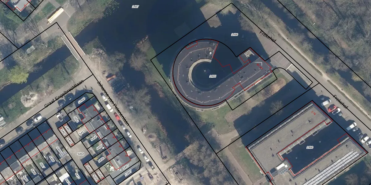 Het perceel waarop Frekehof 84 staat heeft een oppervlakte van 1621 m². Dit is een zeer groot perceel. De perceeloppervlakte wordt geregistreerd door het Kadaster. Gedetailleerde informatie over de maten van dit perceel kunt u vinden in het rapport Kadastrale kaart met maatvoering van Frekehof 84.
